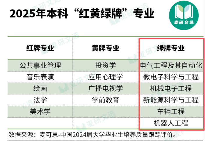 微电子科学取工程、集成电设想取集成系统、电子科学取手艺、电子消息工程等;国度《“十四五” 现代能源系统规划》明白推进电网智能化升级;电气之所以持久抢手,当前机械人财产正加快财产化,从动驾驶、智能座舱等标的目的人才特别紧缺。注:麦可思研究院《2025 年中国本科生就业演讲》是基于全国 17.1 万名 2024 届本科生结业半年后的评价,